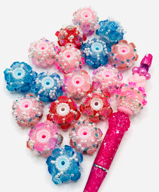 Three-dimensional flower UV Resin bead knit with hook loop attach to charm,Random Mix 32mm
