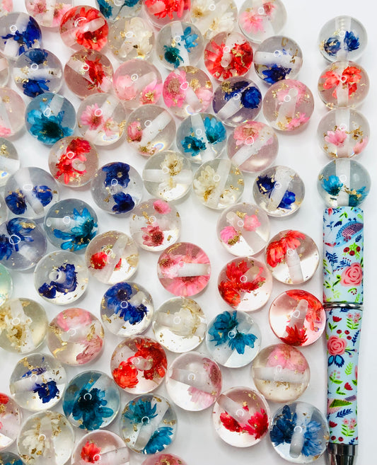 acrylic Dried flower Gold leaf Multi-colored acrylic beads 16mm Random Mix