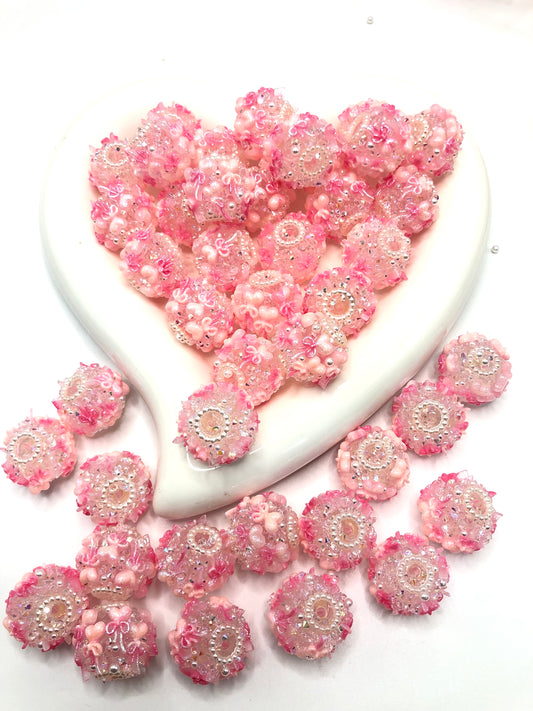 balloon heart beads Acrylic bead Love bow balloons Rhinestones and pearls bead 21mm colored ,random mix