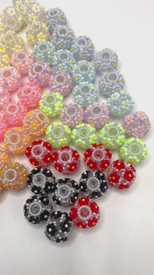 beaded beadable flower bead daisy flower with pearl transparent acrylic base bead ,colored ,random mix