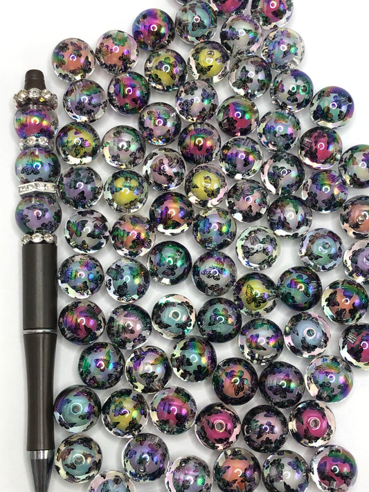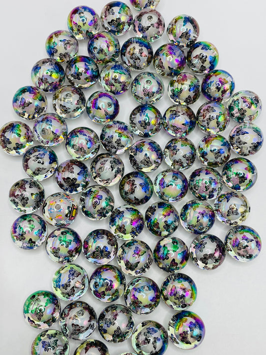 Acrylic bead Acrylic lace print Double layer multi-colored acrylic beads butterfly 16mm Random Mix