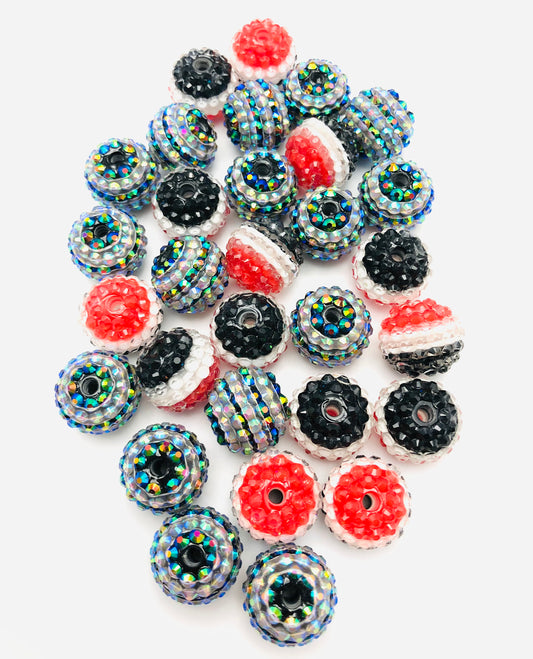 Jelly Beads Black and Red Rhinestone Beads,Random Mix,18mm