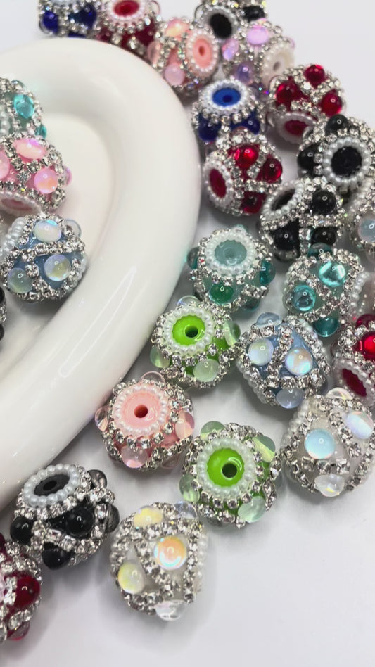 fancy bead fancy bubble heart shape crystal rhinestone ornaments with pearl diy beads colored random mix