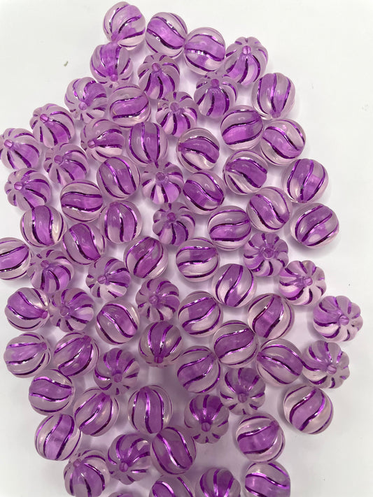 acrylic bead pumpkin bead colored with line ,16mm