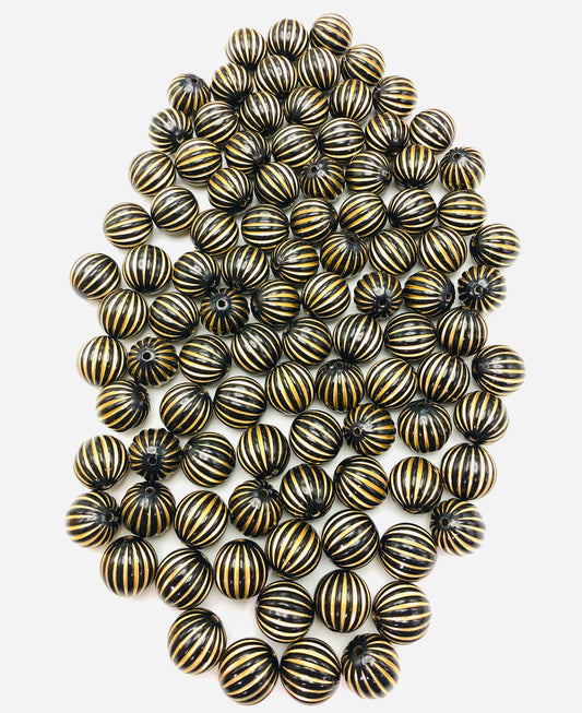 Acrylic pumpkin bead with gold or silo r line colored random mix 16mm