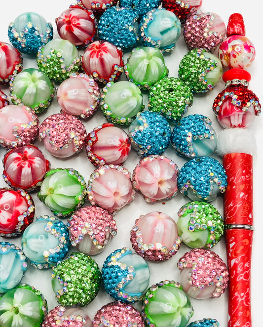 fancy bead acrylic rhinestone chain lantern pumpkin bead craft with pearl and colored crystal,random mix 20mm