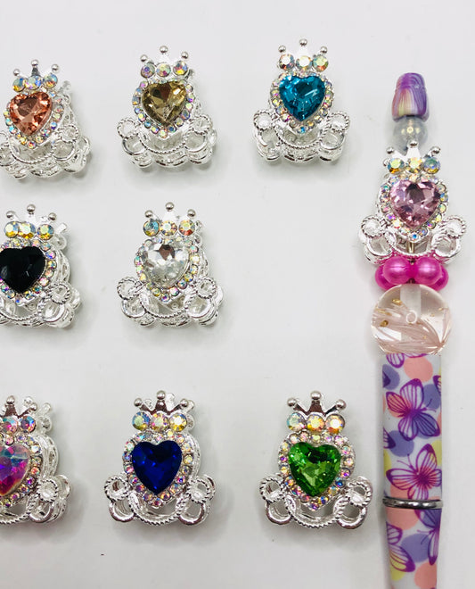 fancy alloy metal Pumpkin wagon chroma heart rhinestone pumpkin carriage with crown String of beads high(26mm)breadth(22mm) Random Mix
