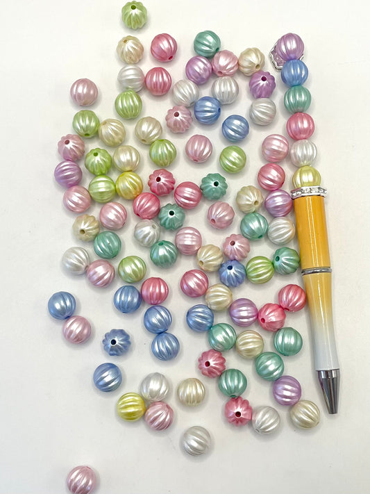 Shiny Cream Multicolor Acrylic Pumpkin Beads,Random Mix,16mm