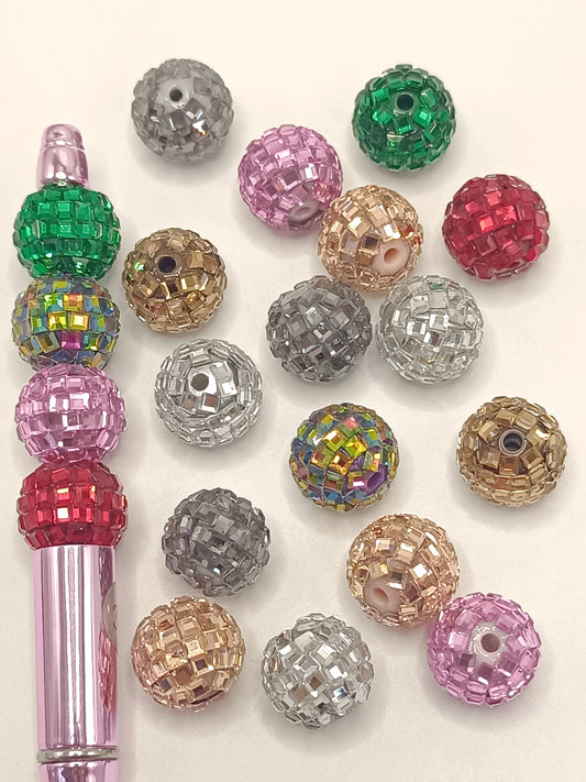 Disco Ball Beads, Sparkling Acrylic Beads with Crystal Rhinestones,Random Mix, 16mm