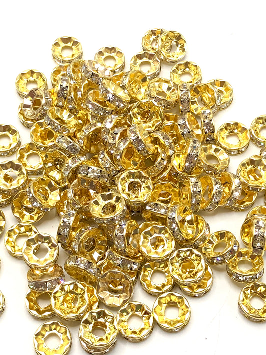 All Color Spacers With Rhinestone,Random Mix,15mm