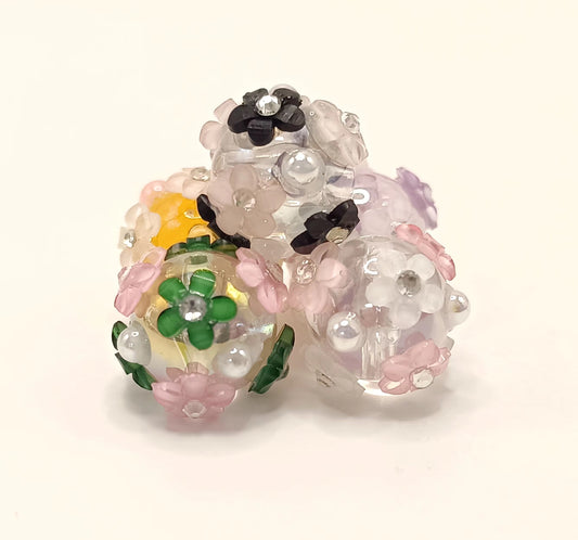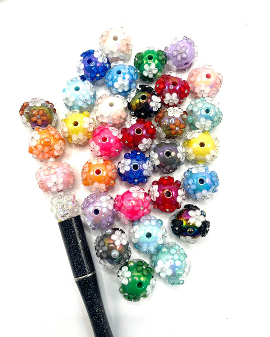 3D Flower Bead Solid acrylic bead And Colored Small Flowers With Pearl Rhinestones,16mm random mix