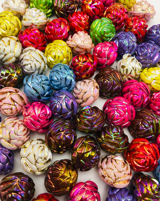 Rose bead Multicolor acrylic flower beads Dark color uv 18mm Random Mix