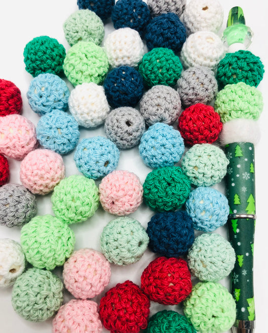 wool knit Wooden bead Colorful wool woven beads 18mm Random Mix