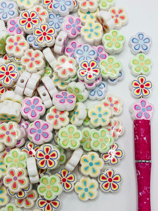 Fancy Colorful Daisy Flower Soild Clay Beads,Random Mix,18mm Fancy-541