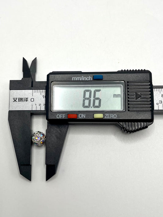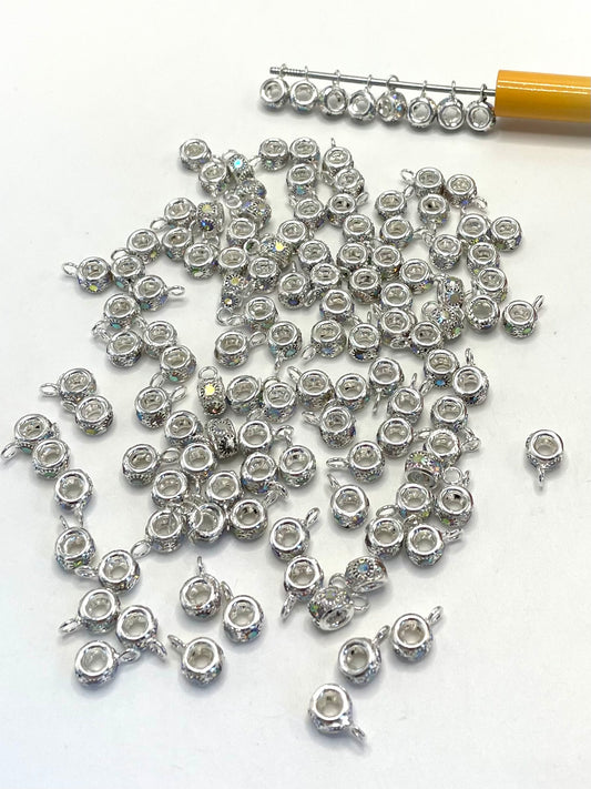 Metallic Silver Charm Pendant or Spacers with AB Color Rhinestones,8mm