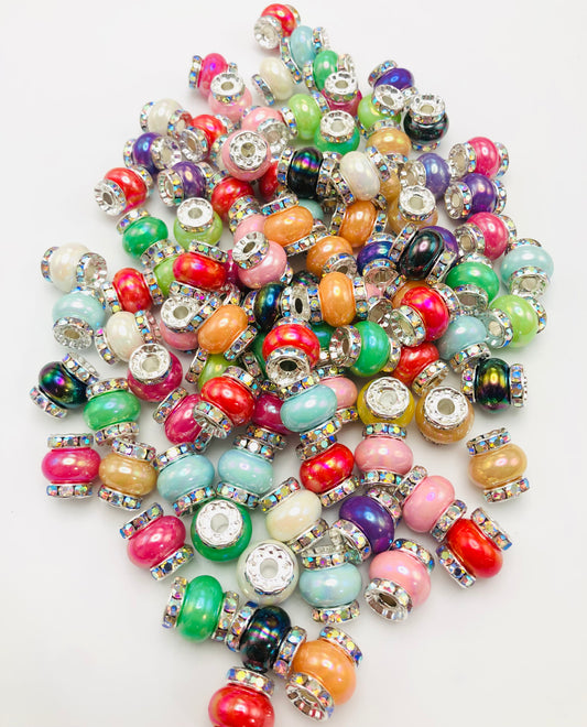 All Color Spacers With Rhinestone,Random Mix,15mm