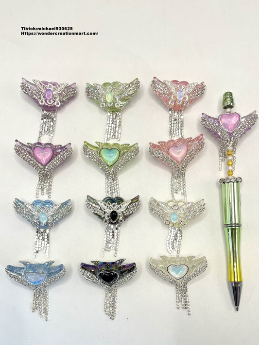 Dangle Dangling Fancy Clear Multicolor Wings with Love Crystal Heart and Metal Butterfly Rhinestones Metal Chain,Random Mix,37mm