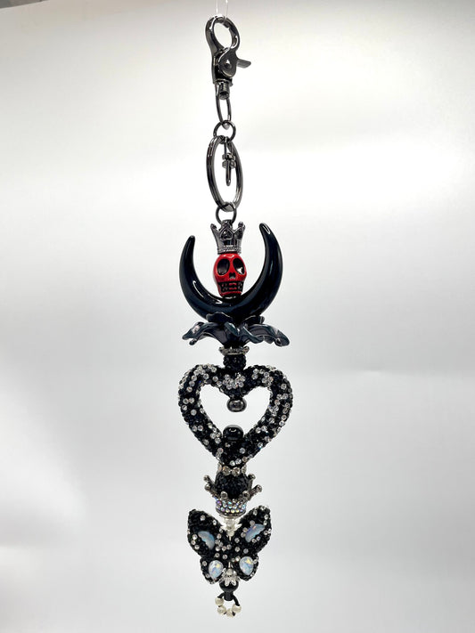 Halloween series Bling Bling Black Skull Cool Glisten Heart Clay Crown Butterfly Handmade Limited Edition Key Chain