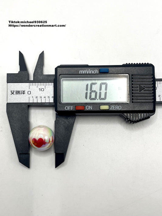 Valentine's Day Heart Electrocardiogram White Acrylic Round Beads,Random Mix,16mm