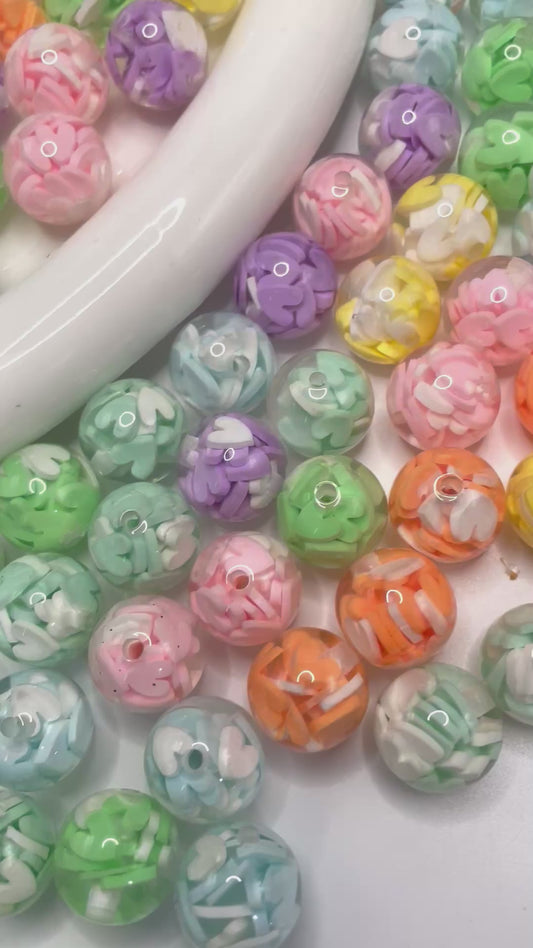 Clear Glitter 3D Heart Multicolor Acrylic Round Beads,Random Mix,20mm