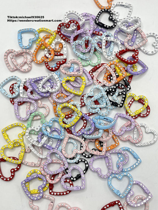 Metal Glossy Multicolor keychain Link Heart Shape with Clear Rhinestones,25mm