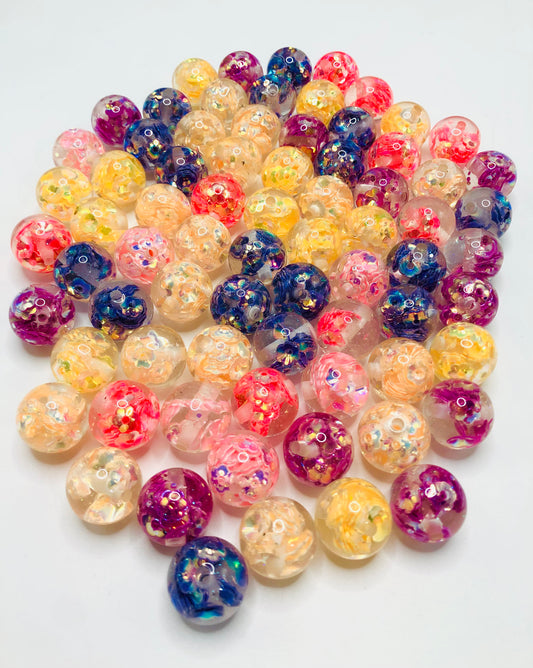 Acrylic glitter bead with heart shape inside colorful ,16mm random mix