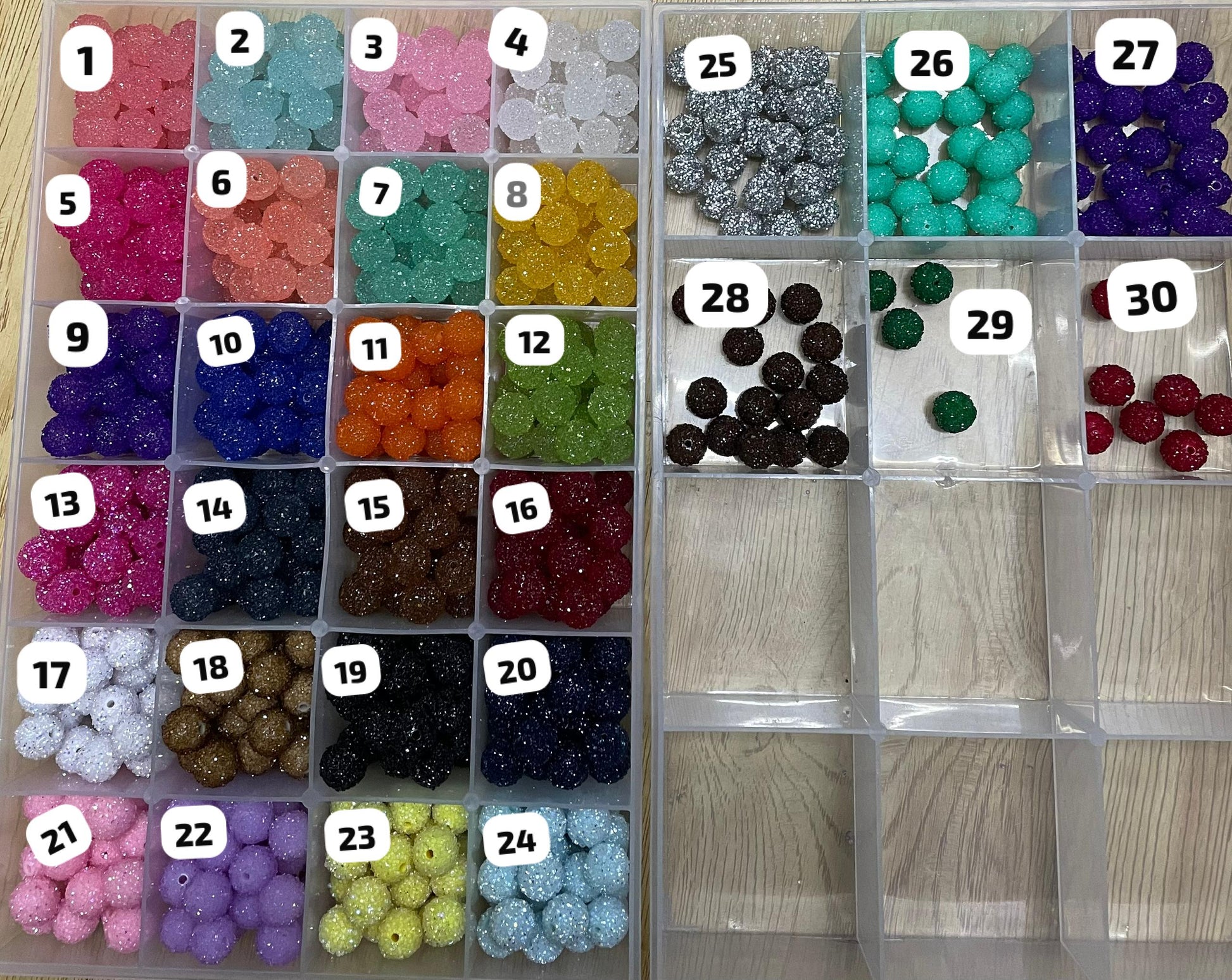 Beaded beadable acrylic 16mm sugar bead transparent and solid color bead with sugar,random mix