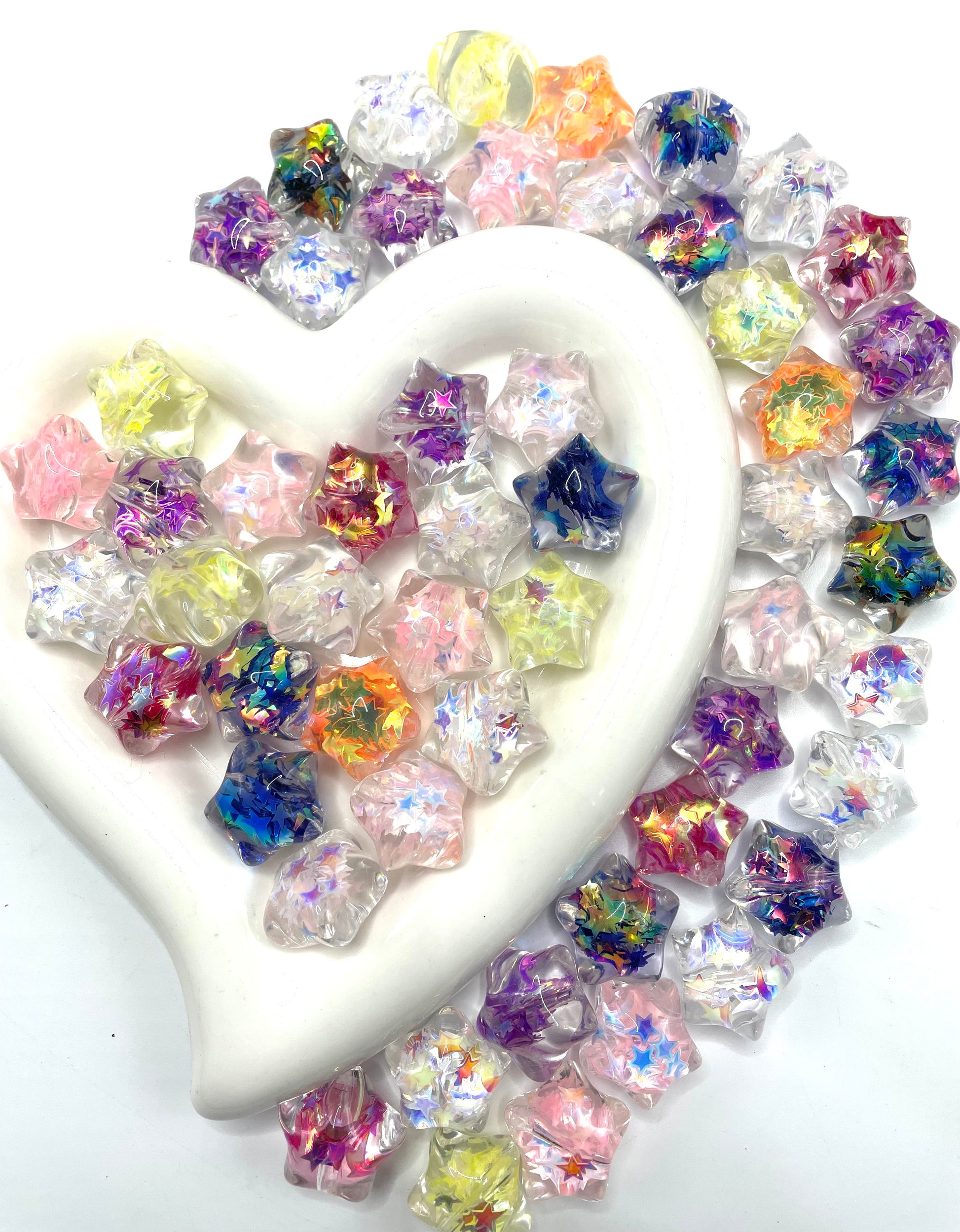 Acrylic bead star shaped with confetti star inside ,random mix)