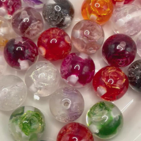 acrylic bead with glitter colored rose inside beaded acrylic beads ,random mix 16mm