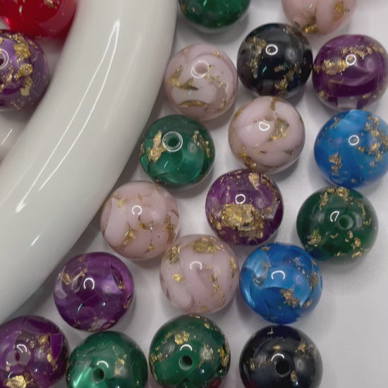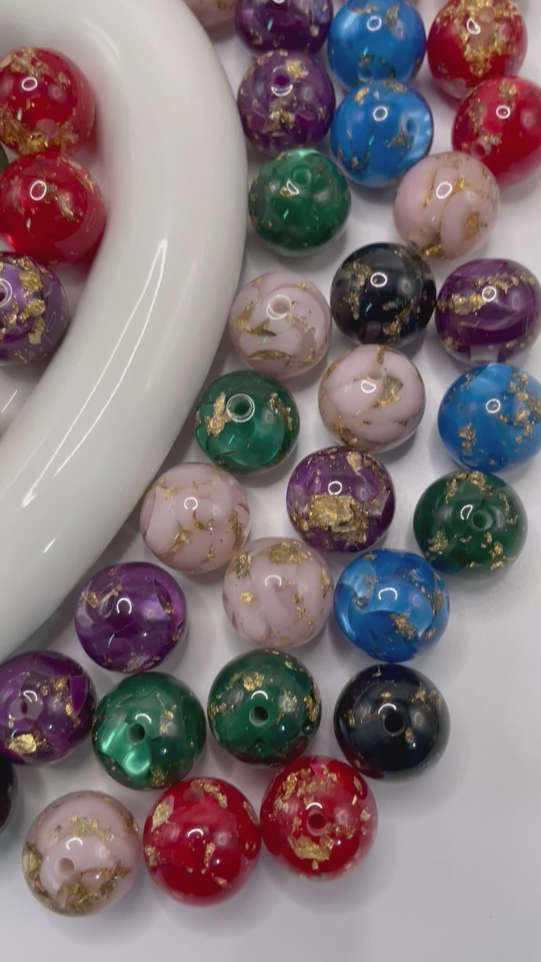acrylic pink Moon Gold foil marble look Bead 16mm Random Mix