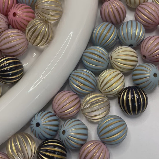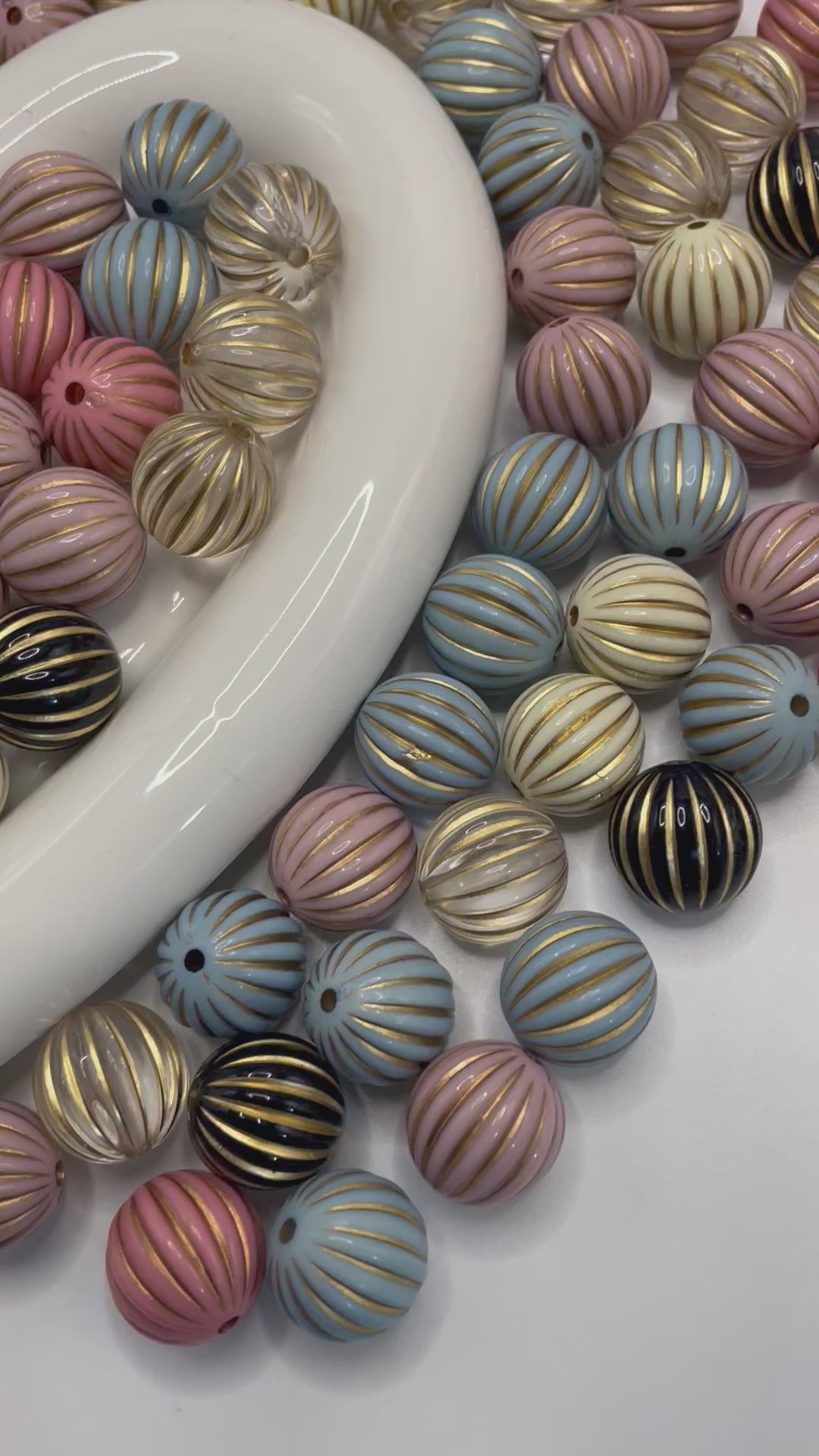 Acrylic pumpkin bead with gold or silo r line colored random mix 16mm