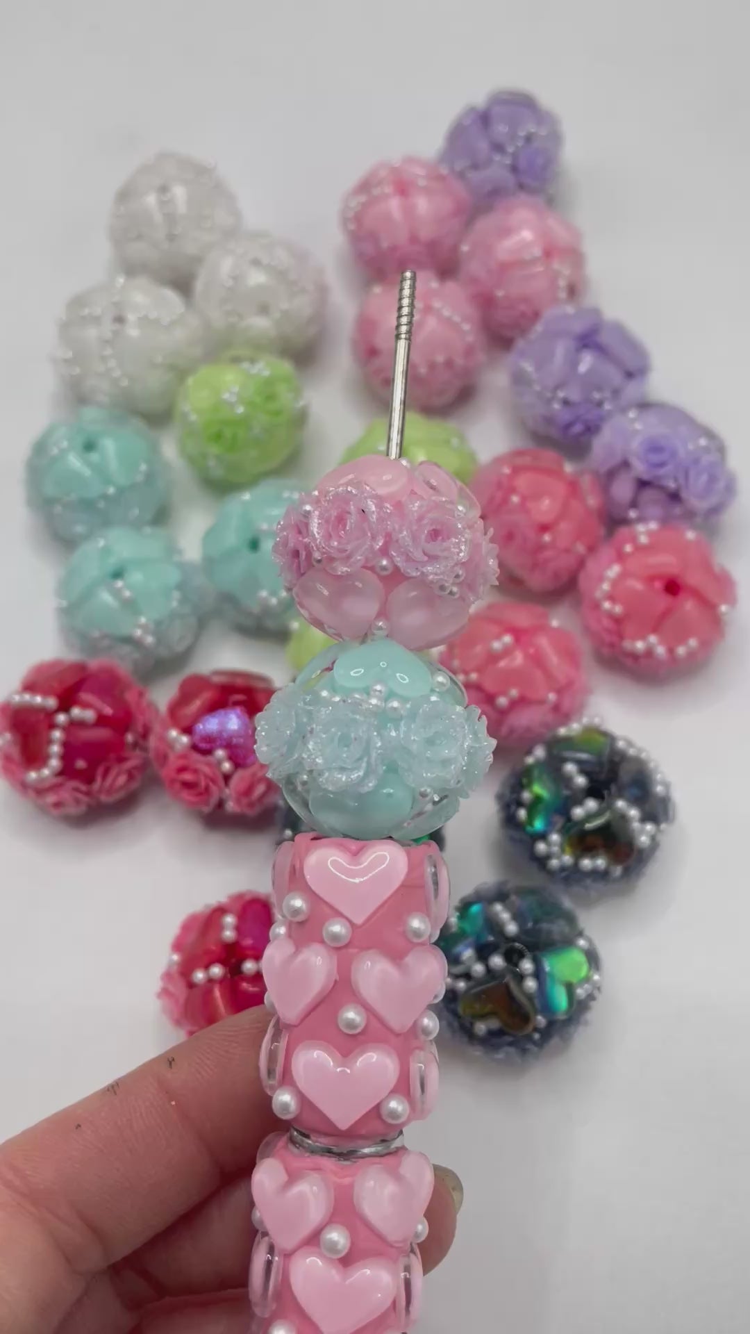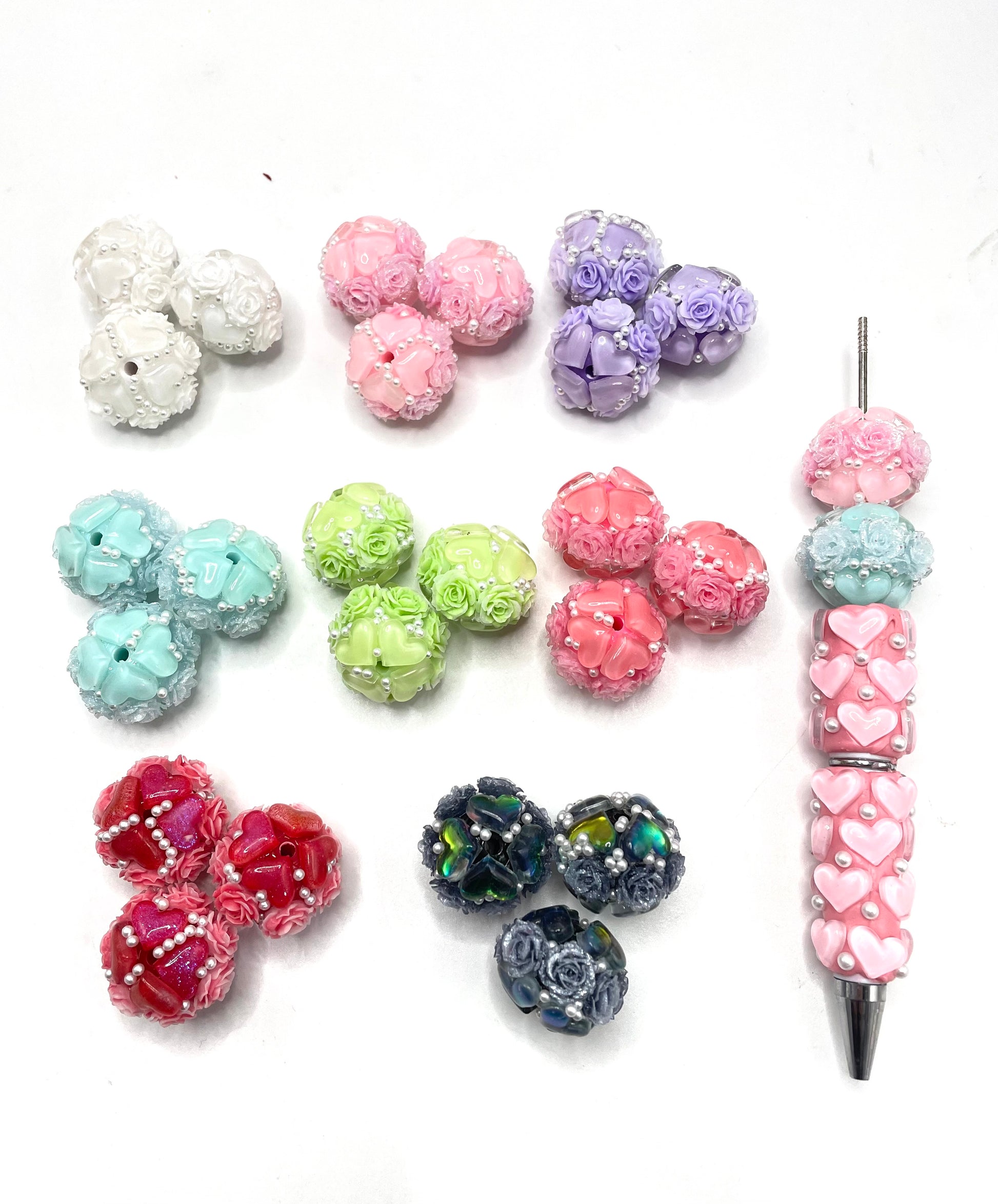 Beaded beadable fancy heart beads ornament with rose flower and pearl ,colored ,random mix