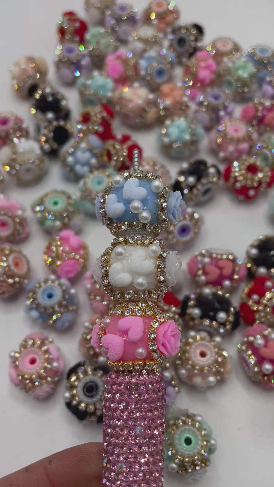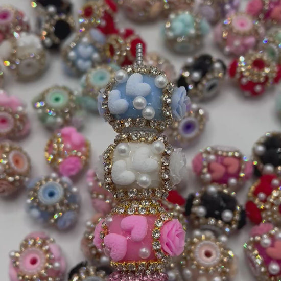 beaded beadable fancy heart beads with rose flowers ornamental with pearl and rhinestone chain,colored ,random mix