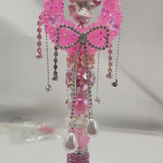 beaded beadable fancy moon beads with rhinestone chain bow dangling butterfly,colorful,random mix