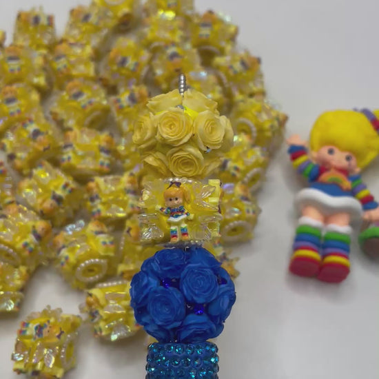 Beaded beadable beads rainbow brite girl figure character beads ornament with butterfly