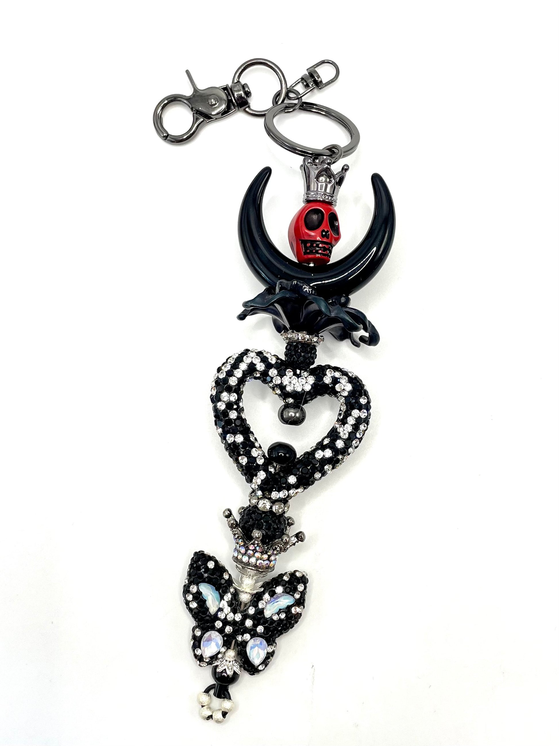 Halloween series Bling Bling Black Skull Cool Glisten Heart Clay Crown Butterfly Handmade Limited Edition Key Chain