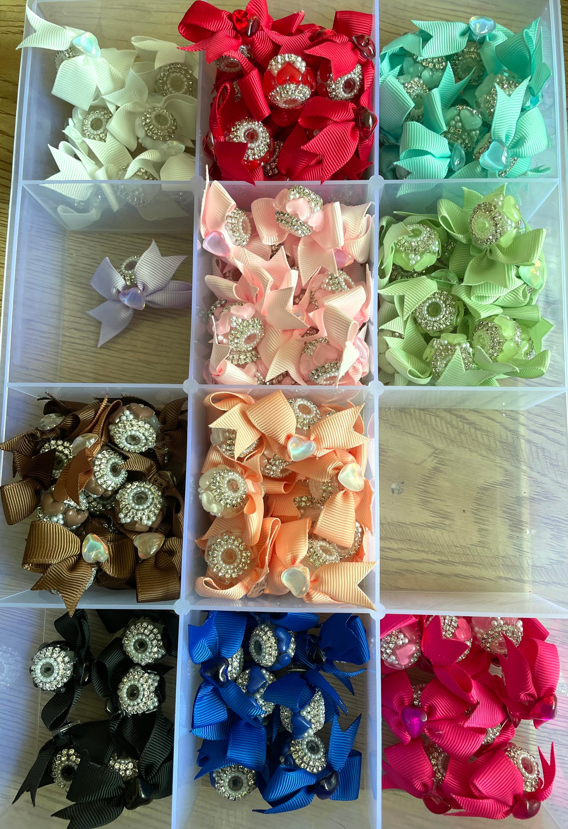 Beaded beadable Textile bead heart bow bead textile fabrica bow with lacy and crown bead fancy bead craft with crown ornament with bow satin ribbon knot,ornament with pearl and sugar stone, delicate handcraft ,randon mix color