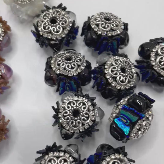 fancy bead ornaments with butterfly and square shape stone and rhinestone chain ,colored ,random mix