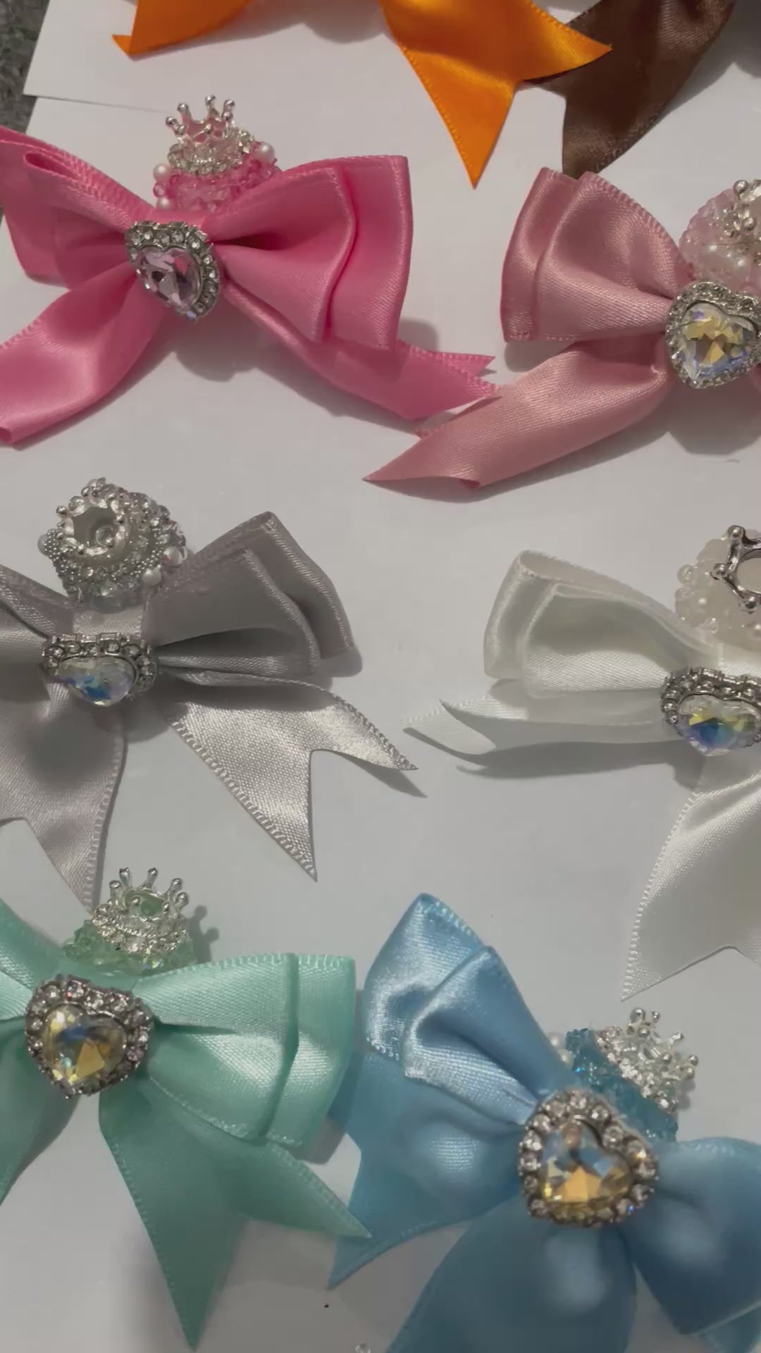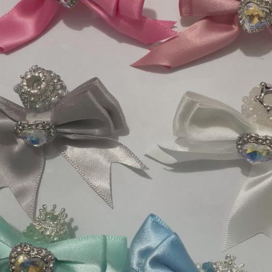Color #1-#24 textile fabrica bow with crown bead fancy bead craft with crown ornament with bow satin ribbon knot,ornament with pearl and sugar stone, delicate handcraft ,randon mix color