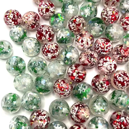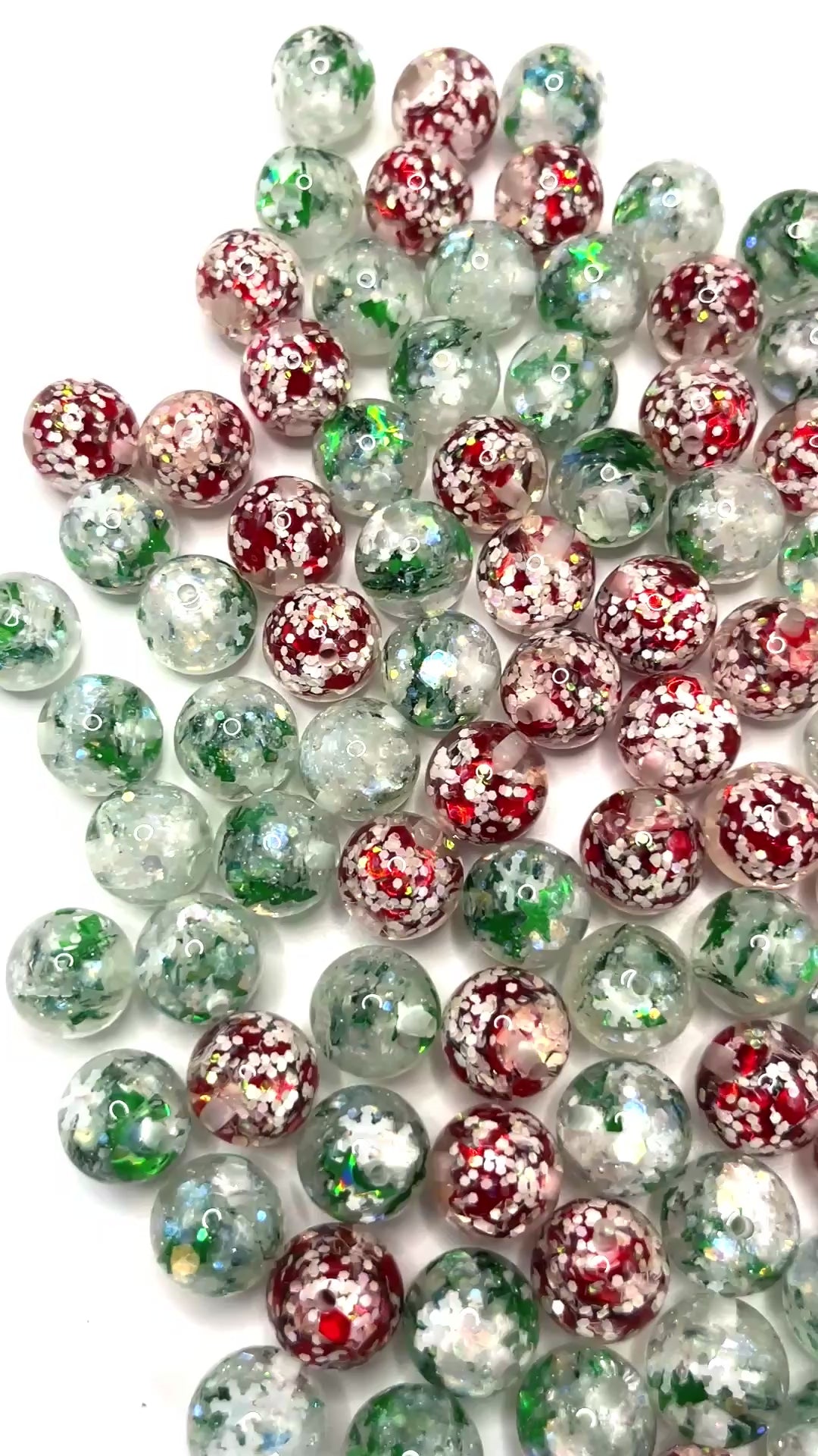 diy beaded bearable acrylic beads with the festival Christmas elements inside -green and red color ,random mix 16mm