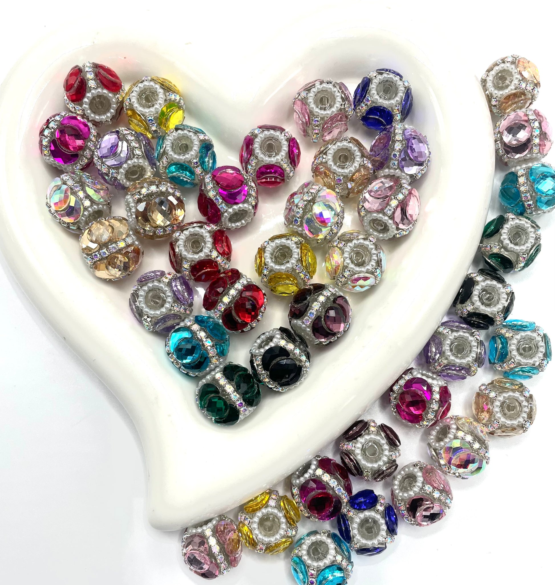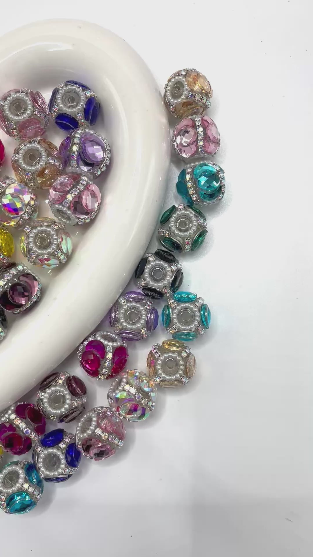 diy beaded beadable mirror crystal fancy bead with rhinestione chain and Pearl,colored ,random mix