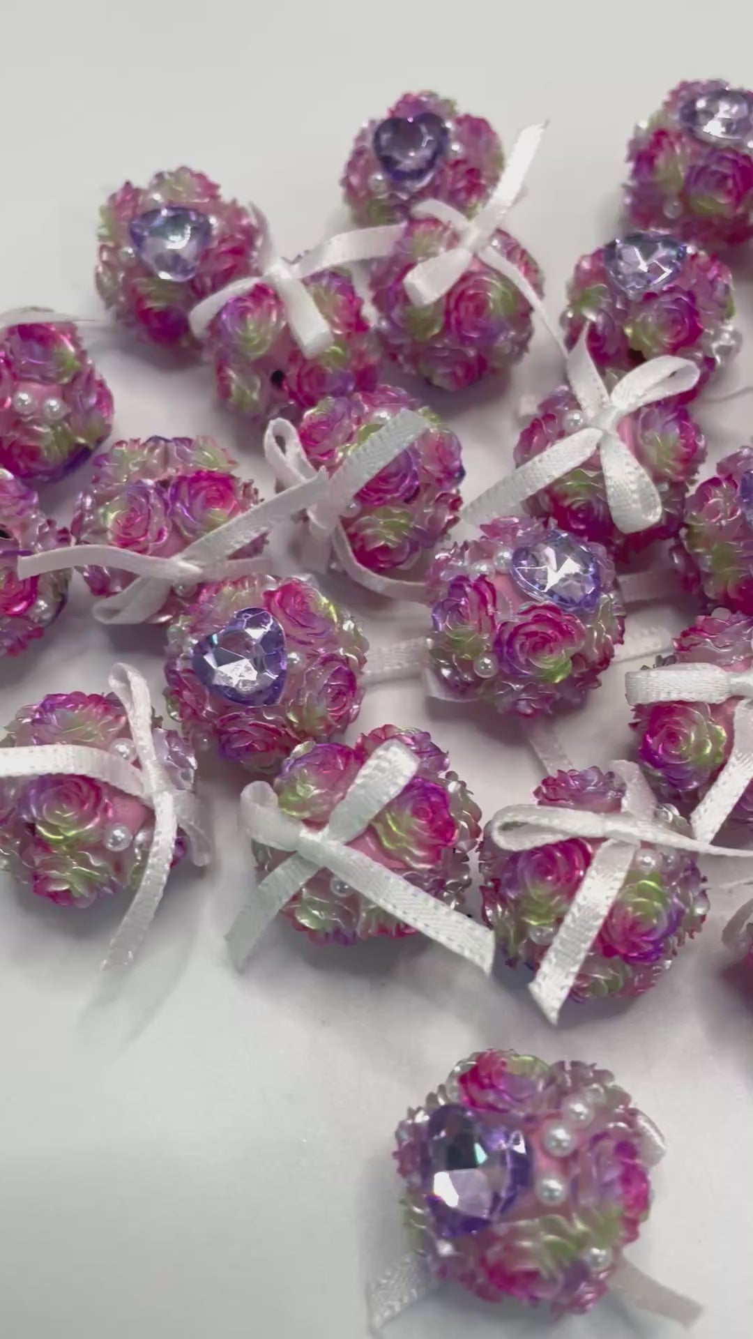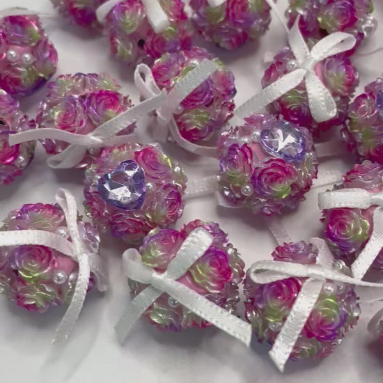 diy bow flower beads ornament with heart shape stone ,colored,random mix