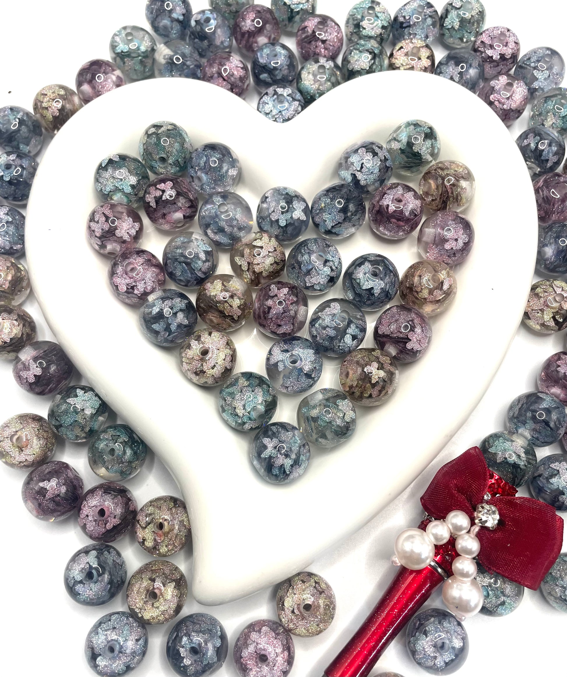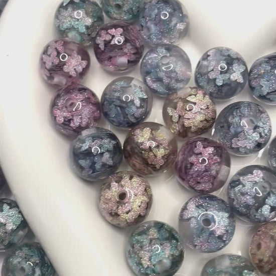 diy acrylic beads has glitter butterflies inside,colored ,random mix 16mm