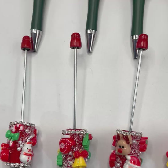 diy beaded beadable pens for Christmas ornaments with candy cane tree bell