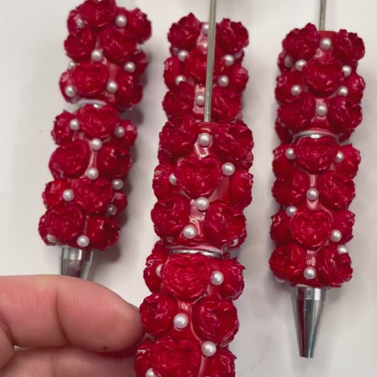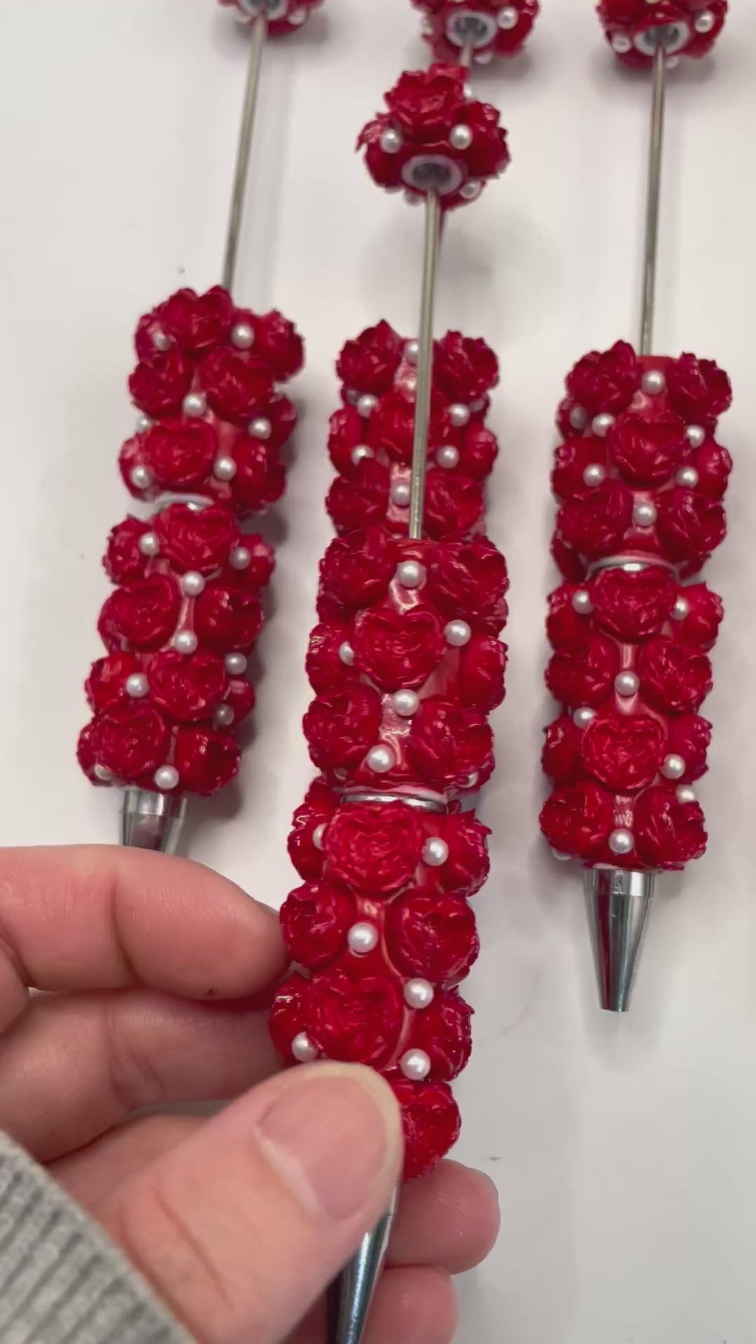 diy beads with fancy heart shaped rose flower pens ornaments with pearl fancy flower pens Christmas color red