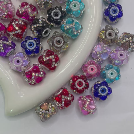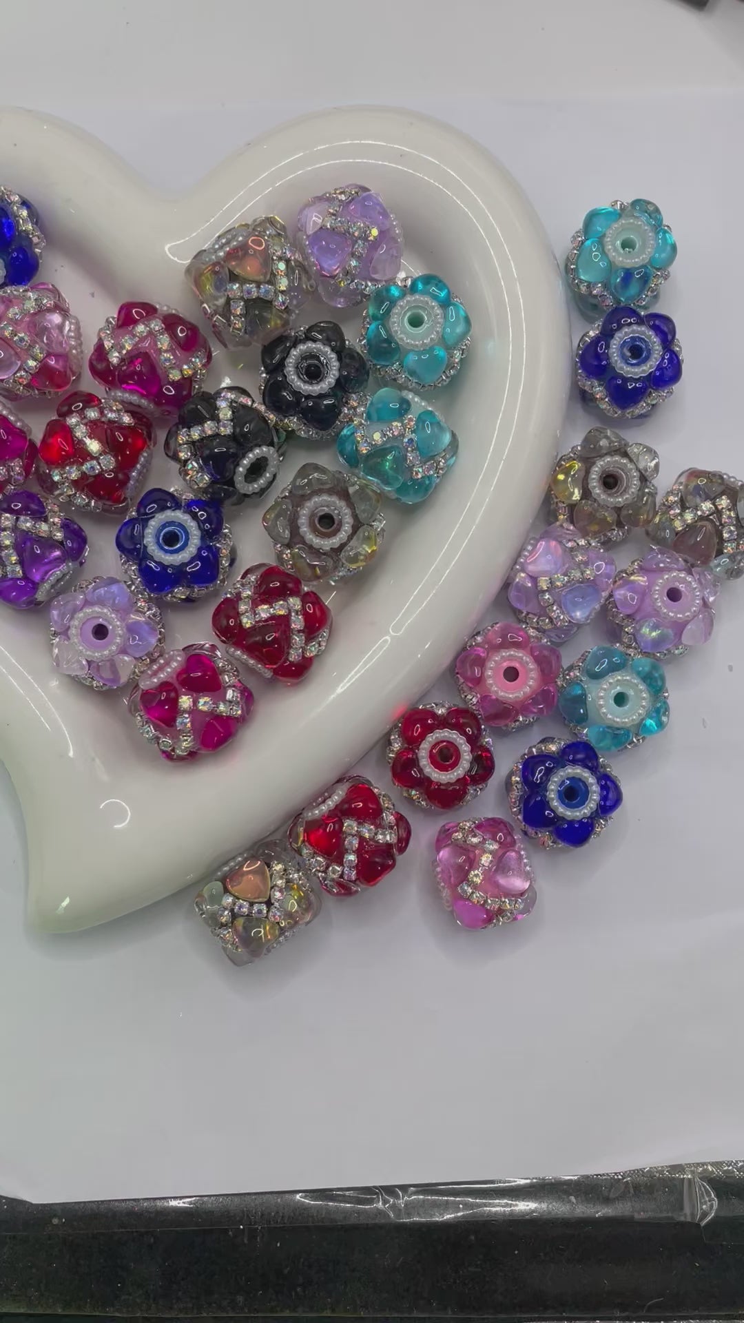 diy fancy bead fancy crystal heart ornament with rhinestone chain and pearl colored random mix