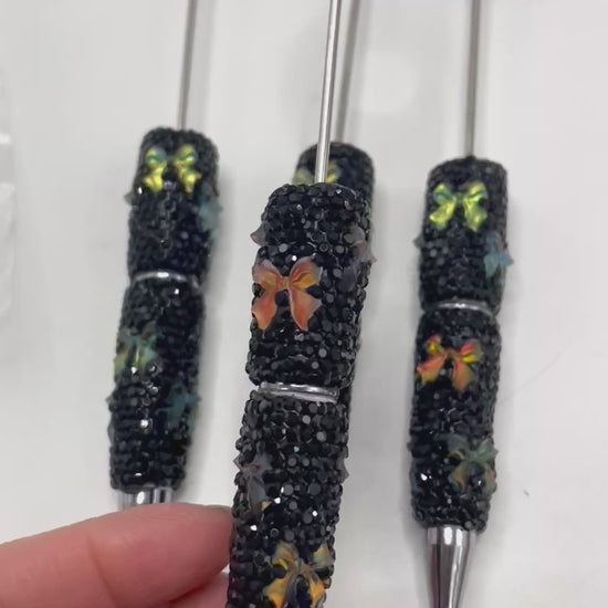 DIY fancy clay base rhinestone pen ornament with ombre color bow ,bow pen ,rhinestone bow pen