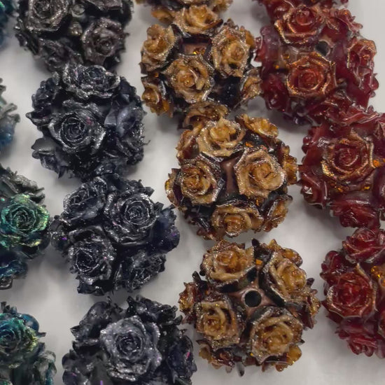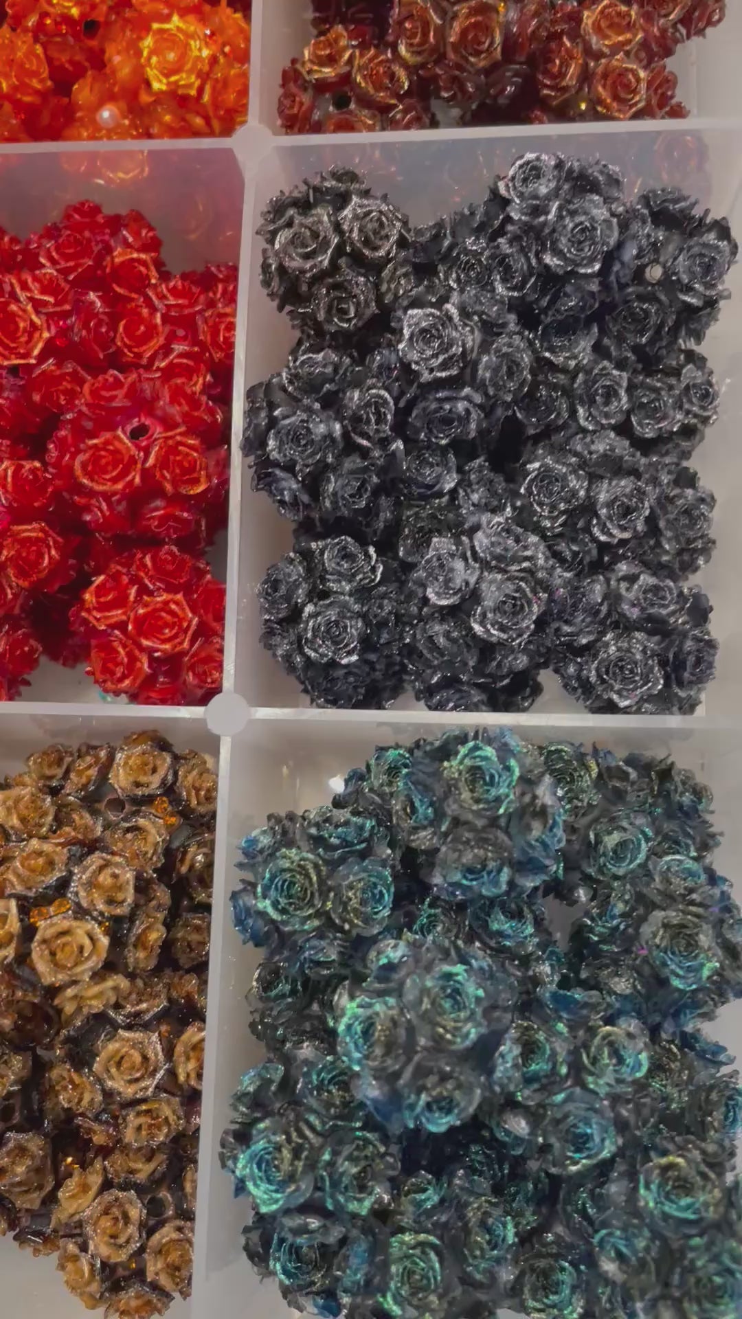 diy soft metallic glitter rose flower bead ornaments with rhinestone colored Christmas vibe ,colored ,random mix