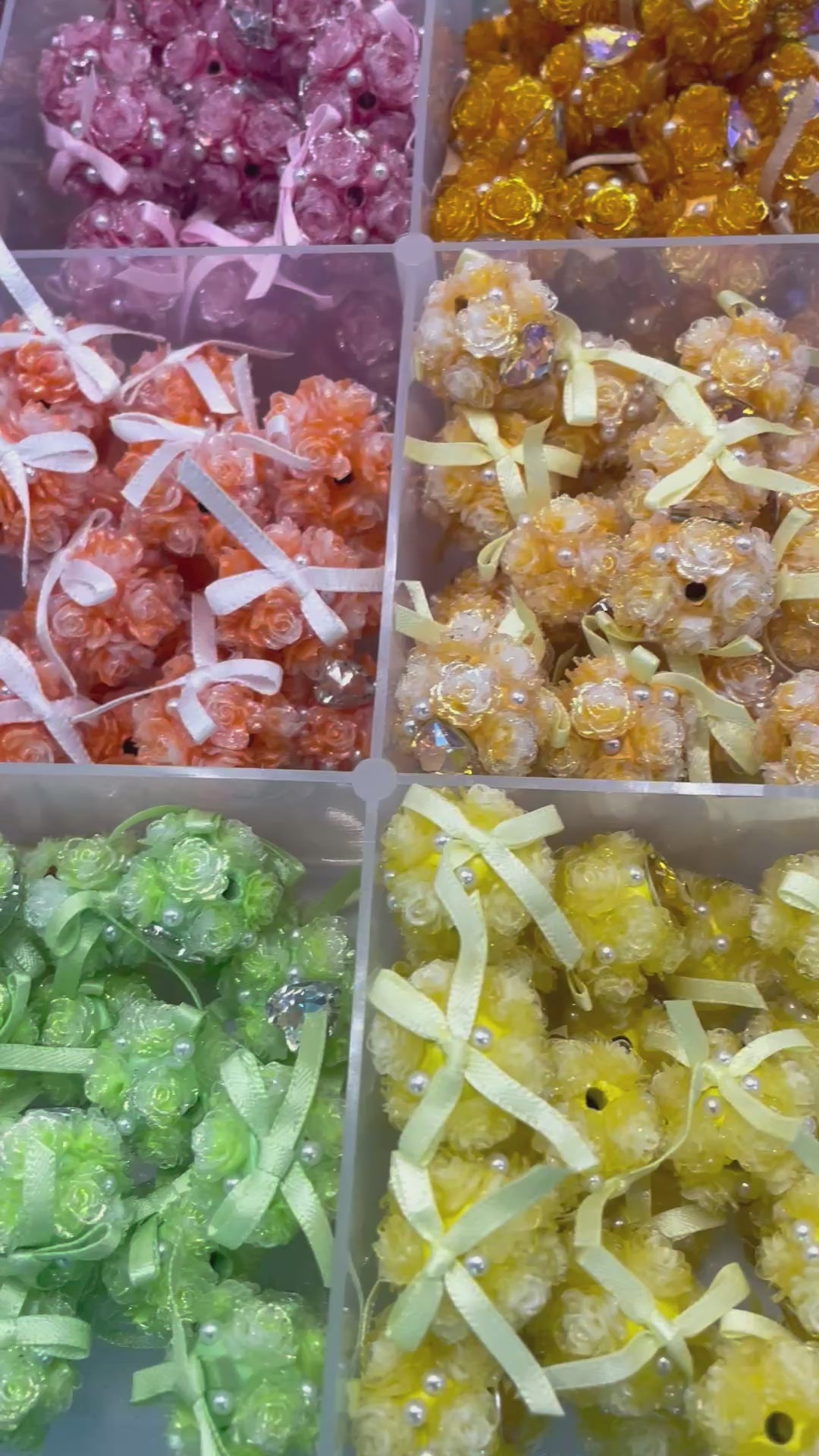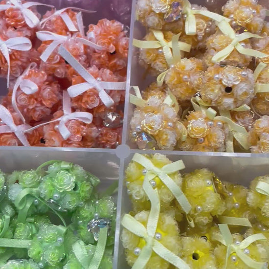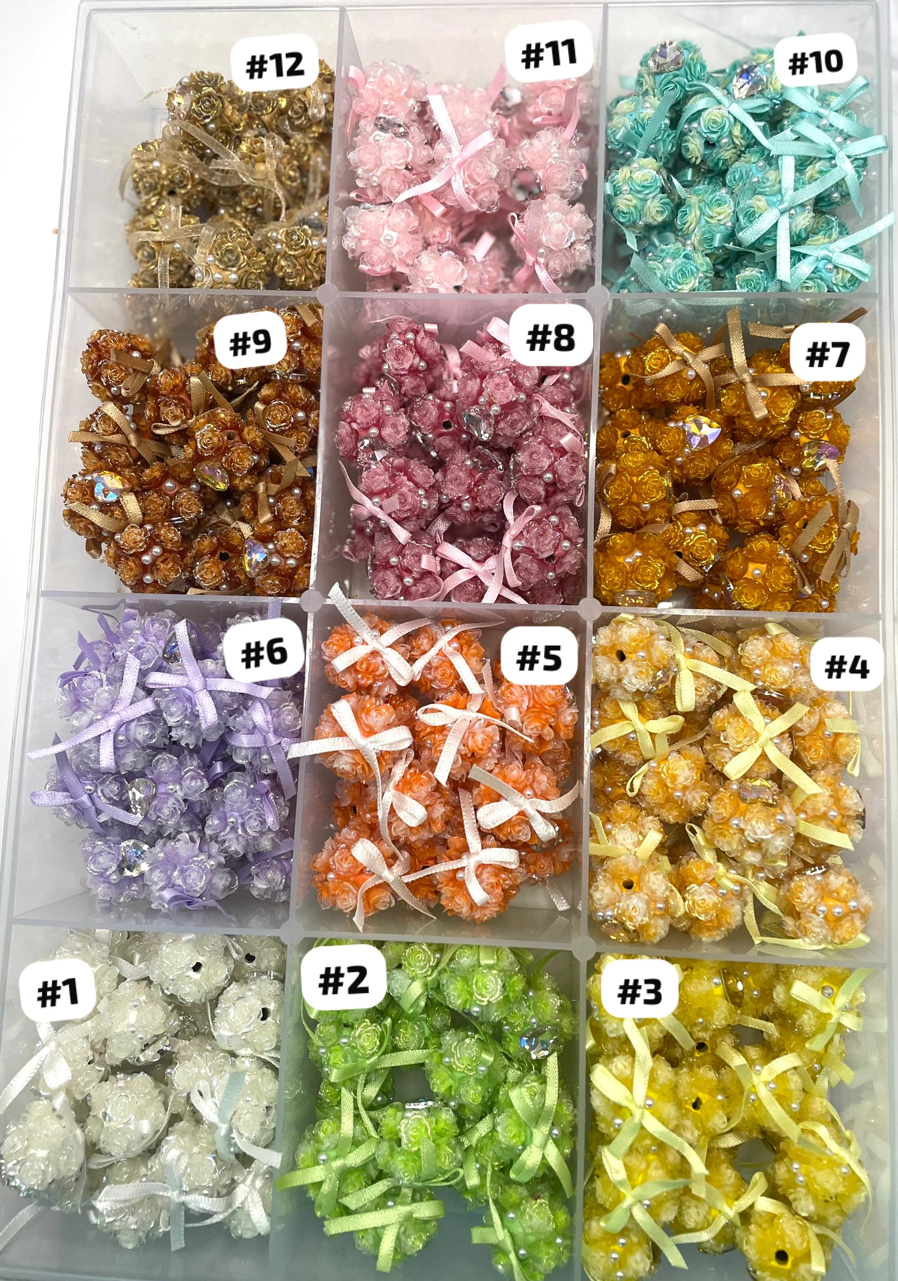 diy soft rose glitter bow flower beads ornament with pearl and heart shape stone ,colored ,random mix