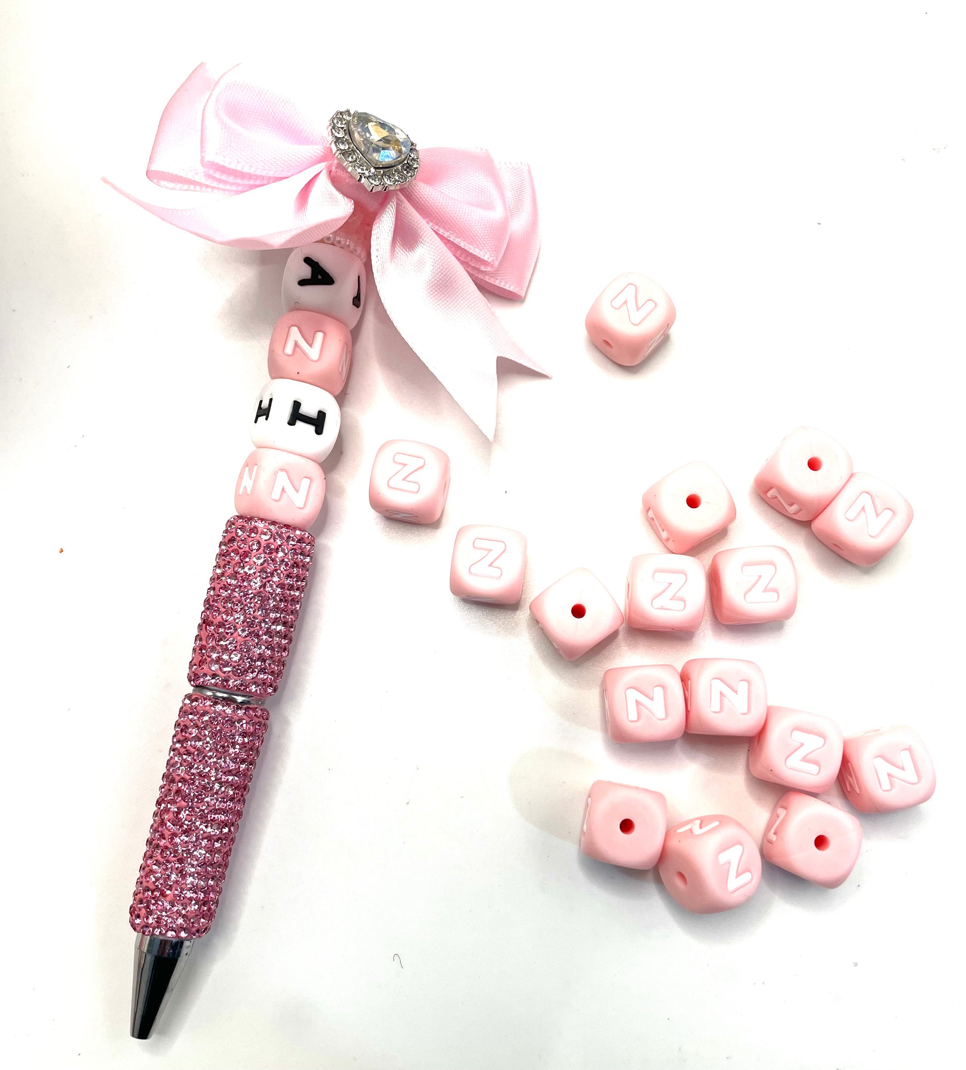 DIY square silicone letter bead beaded silicone 12mm ,pink color ,white color
